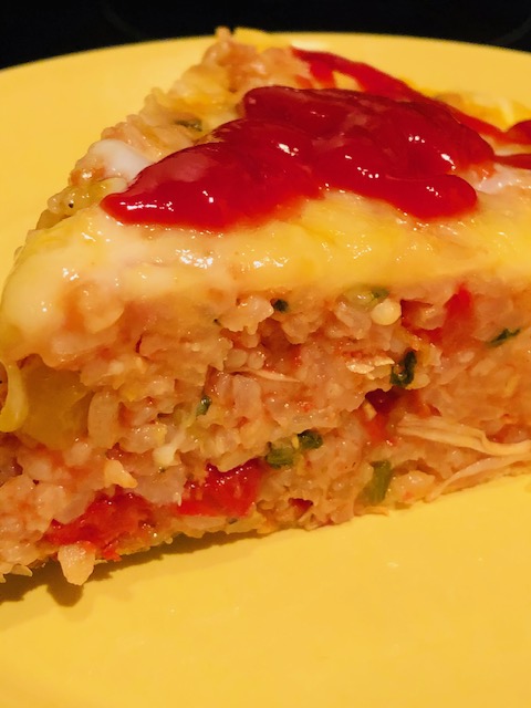 スパニッシュオムレツを焼くはずでしたが、余ったご飯も使う事にしましたら、直径30センチの円形オムレツ?が出来てしまいました。